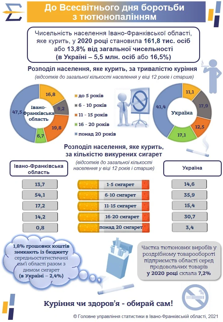 результати свідчать, що шкідливу звичку курити мають 13,8% або 161,8 тис.