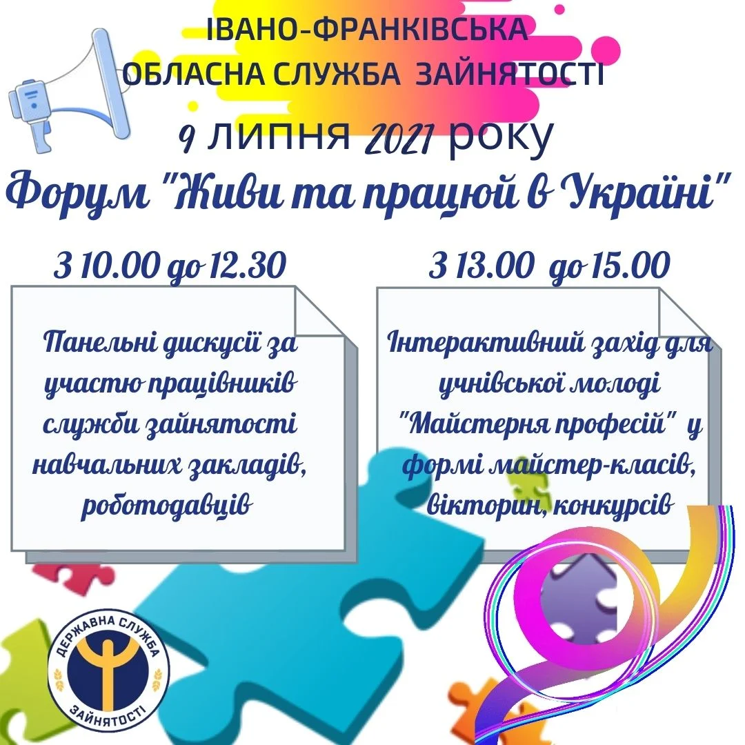 9 липня 2021 року Івано-Франківська обласна служба зайнятості проводить форум «Живи та працюй в Україні».
