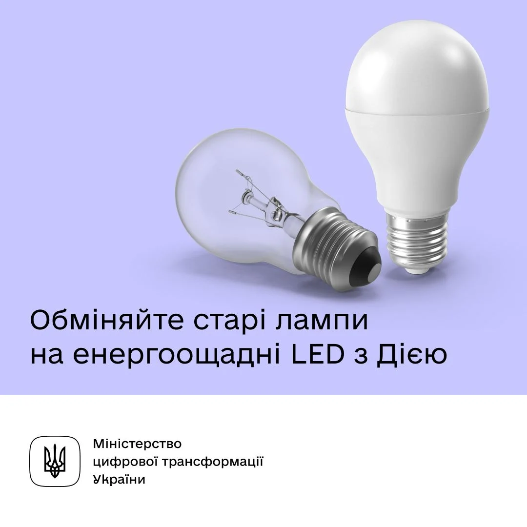 Нова послуга в застосунку Дія: обміняйте 5 старих ламп розжарювання на 5 енергоефективних LED-лампочок